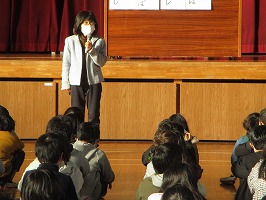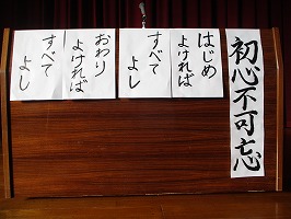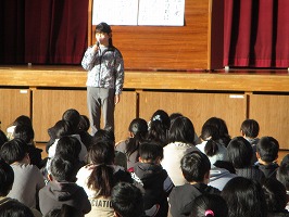 「一年の計は元旦にあり」という言葉を知っていますか。昔の中国の言葉です。何事も初めが大事という意味です。では、「一日の初め」はいつですか。「朝」ですね。「学校の初め」は、「4月」、そして「今日」ですね。人間には『節目』が大切です。目を合わせて、先生の話を聞いてくれているみんなは、よいスタートが切れていますね。今年もみんなの頑張りを楽しみにしています。