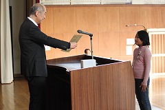 今日の朝礼では、最初に夏休みのアイディア貯金箱コンクールの表彰がありました。