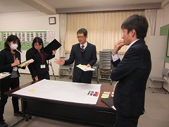 授業後の研修会では、グループでの話し合いをした後、遠藤先生から授業づくりについて教えていただき、研修を深めました。