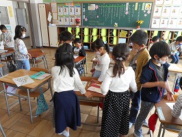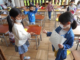 入学して約2週間が経ちました。今日は、月1回の外国語活動の日でした。キース先生の出身地であるイギリスのお話を色々と聞きました。その後で、英語でのジャンケンの仕方(ロック・シザーズ・ペーパー・ワンツースリー)を学び、全員でクイーンジャンケンをしました。お家でもぜひやってみてください。