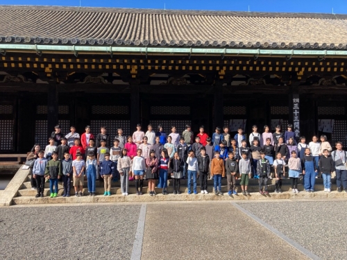 三十三間堂に到着しました。三十三間堂は、ほの暗い本堂内に整然と並んだ1,000体の千手観音像が黄金色に輝き、その幻想的な雰囲気が大人気のお寺です。