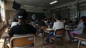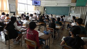 栄養教諭の講話の後、給食を食べていただき、そのあと、子どもたちの給食の様子を見ていただきました。
