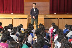 教頭先生からのお話では、「この階名わかるかな?」「ドレミ、ドレミ、ソミレドレミレ~」というチューリップの歌詞から、「みんなどの子もよいところがある」「つらいことや大変なことがあっても頑張っていこう」という話がありました。
