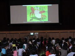 2日(月)の1時限目には、1~3年生が体育館で、「のっぽさんの手話入門」「さるかに合戦」のDVDを視聴しました。DVD視聴を通して、手話が会話の手助けをしていることや友達に優しくすることの大切さについて学びました。