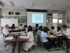 報告の後には、 「子どもたちの歯磨きに対する意識を高めるためにできることは何か」をテーマに、各学級の現状と今後の課題(取り組んでいきたいこと)について、意見を出し合いました。