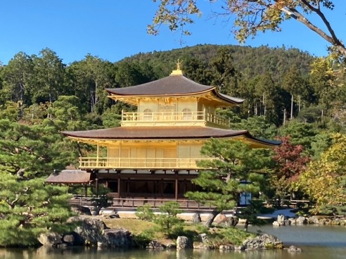 金閣寺は昨年改修されました。好天の下での輝きは一段と素晴らしいものがあります。