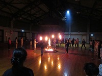 四つの火から、5年生を明るく照らすキャンプファイヤーが点火。