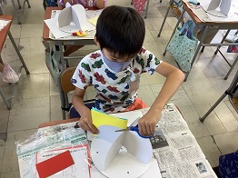 「くるくるランド」の制作に取り組む3年生さん