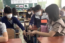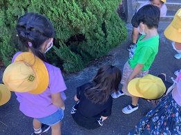 校舎の廊下にイモムシがいたという事で、皆さん大騒動
