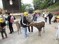 その後は、鹿の楽園となっている参道で、鹿せんべいをあげました。