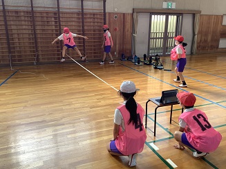 あー、なるほど。走り高跳びの練習です。面白い。