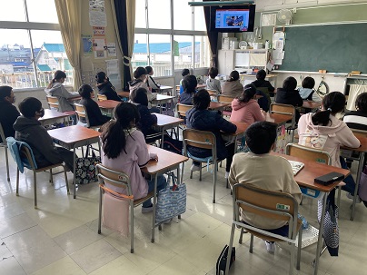 朝は全校で講話を聴きました