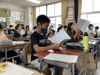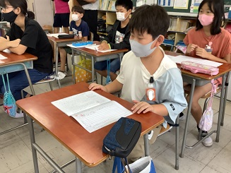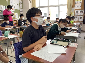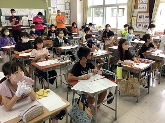 4年生さんの国語の授業です。人権の研究授業という事でたくさんの先生も足を運ばれていました。(MAX時は15名くらいみえてたかな?)