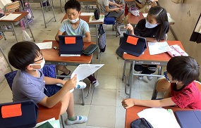 お客さんがたくさんいても、いつも通りしっかりと元気よく授業に向かう姿勢が見せられました