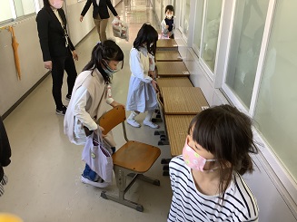 卒業式の準備の時に、6年生を心を込めて見送る姿。