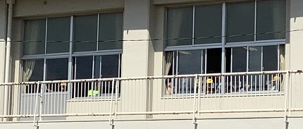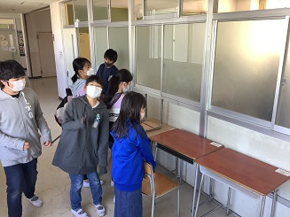 2階の教室に移動して外を見る1年生が可愛いです^^