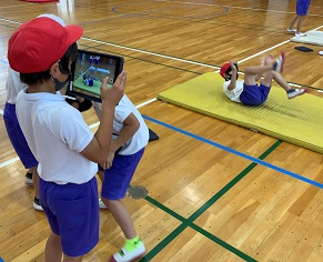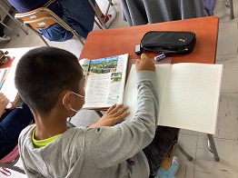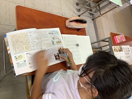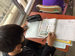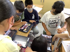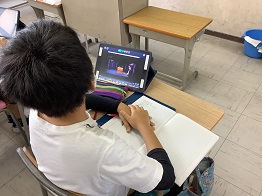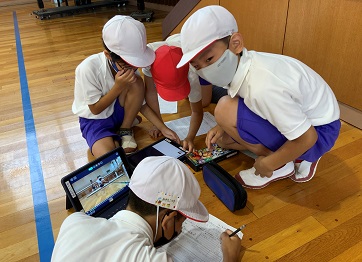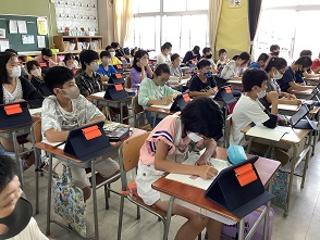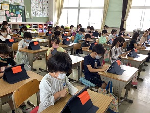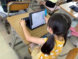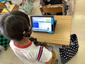 eライブラリで算数のふりかえりに取り組む2年生さん