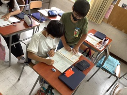 教えあって、問題を解いたり
