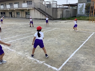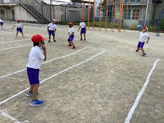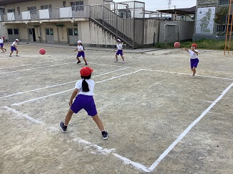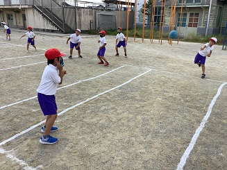 女の子だと両手投げになりますね。