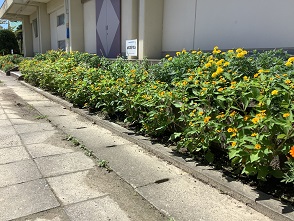夏休みに保護者の方々にも水まきのご協力いただいた花壇です