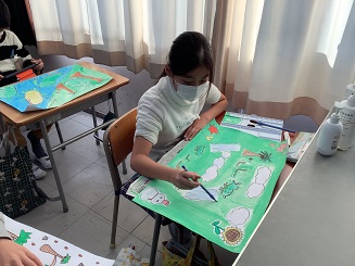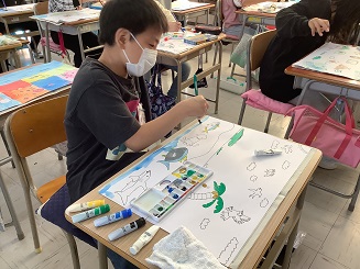 「上手く塗れない~」と話す児童もいましたが、試行錯誤が成長の瞬間なのでいい時間過ごしていますよ^^