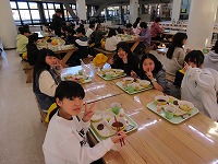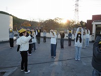 いつもと違う環境での睡眠でしたが、朝の集いでは元気にストレッチ!!