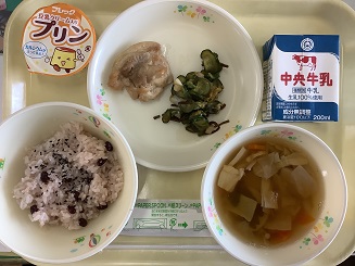 皆さんの進級を赤飯でお祝いです。赤飯大好き。