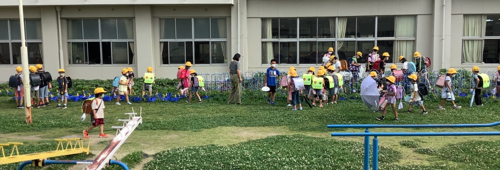 登校後の児童の皆さんが水やり