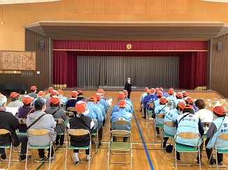 児童会の代表児童から見守り隊の方々へ感謝の言葉を伝えます。
