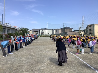 最後に全校で「ありがとうございます」と「これからもよろしくお願いします」と伝え、一緒に下校しました。