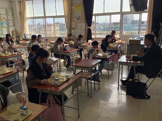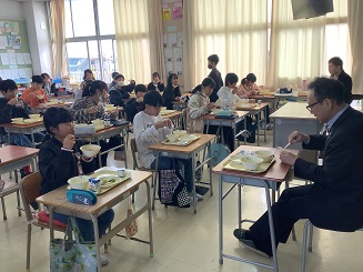 ラストは給食を子どもたちと一緒に召し上がっていただきました