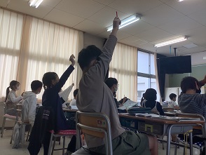 全校の皆さん、この挙手でいきましょう