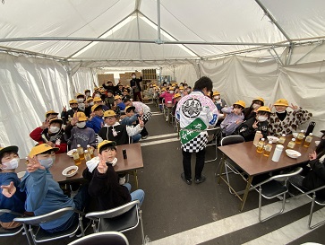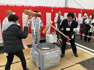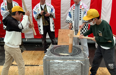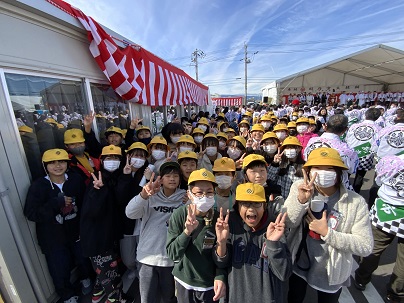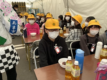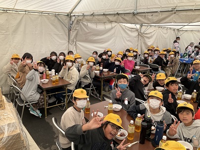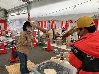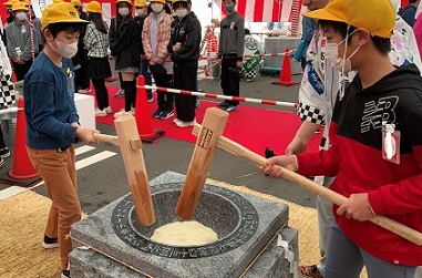 6年生さんが、22日に稲沢市で行われる天下の奇祭「国府宮はだか祭」に奉納される「大鏡餠」作りに参加しました。完成する餠はのべ4tだそうです。でかいっ!!!