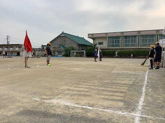風が気持ちよかった。6年生の先生が黄昏れていました