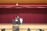 朝礼の中で、「あまっこレシピコンテスト(どんぶり編)」の入賞者の表彰を行いました。