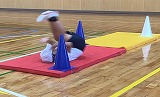 この日は、マットで作った様々なコースを、前まわりでクリアするミッションに挑戦しました。