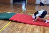 体育の授業で、マット遊びを行いました。