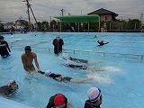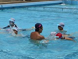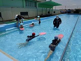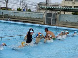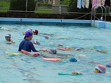浅いプールでは、けのび、バタ足、クロールの手のかき方を練習しました。