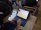 「拾う」「拾わない」タブレットの心情メーターに理由とともに自分の意見を書きこみます。