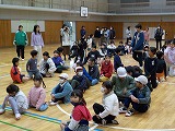 児童会長の挨拶のあと、児童会が企画したゲームを全校で楽しみました。