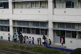 1階の教室:廊下を通らず、教室からすぐに外へ出て避難します。