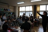 ペアになり、じゃんけんをします。出した指の数をたし算。その答えと同じ番号の話題について話します。