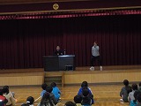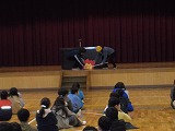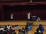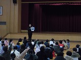朝礼の中で、生徒指導担当の先生から、冬休みの生活について話をしました。先生方による寸劇を交えながら、冬休みの生活で気を付けることについて分かりやすく説明しました。