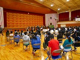 感染症感染拡大防止のため、以前行っていた交流会のように、授業を参観したり、一緒にお弁当を食べたりする活動はできませんでしたが、秋竹小学校の6年生、北中学校の全校生徒のみなさんと、オーケストラのすてきな演奏を鑑賞させていただきました。途中、オーケストラの伴奏でみんなで「ビリーブ」を合唱しました。