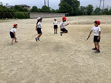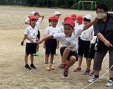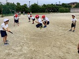 最後に8の字跳びに挑戦。はじめは怖がる子もいましたが、最後は全員がくぐり抜けたり跳んで抜けたりすることができました。