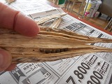 かりっかりに乾燥したさやを割ってみると・・・黒くて小さな種がずらっと並んでいました。