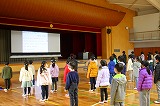 全校合唱練習。久しぶりの合唱ですが、きれいな声が体育館に響きました。