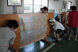 作品に傷をつけないよう、ていねいに梱包材で包み、トラックに積み込みます。卒業生の思いの詰まった貴重な作品ですから、運ぶ際には大変緊張します。緊張と暑さで汗が吹き出しました。