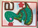 2年生が生活科の授業で、11月初旬に美和高校で拾ったどんぐりを活用してどんぐりアートを作製しました。みんなで協力し来年の干支である「巳」をどんぐりを使ってかわいらしく仕上げました。作製した作品は美和高校に贈呈し、展示していただく予定です。