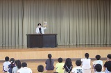 1つ目は、7月に行われた「市長と語ろう あまの未来」で6年生が立派にプレゼンを行ったことです。本当に立派でした。みんなで拍手をしましょう。